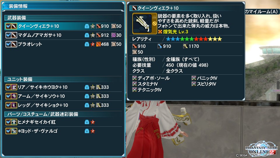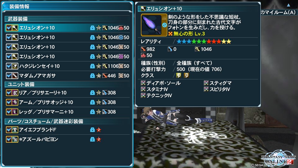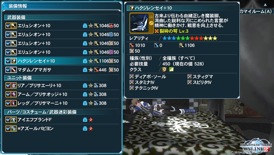 キノはチャレンジクエストやPSO2esがメインなので、装備の更新はしていません。