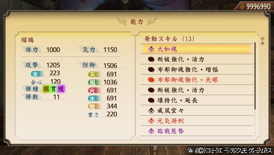 「島津義弘」「行基」「岩倉具視」で「大和魂」「断祓強化・活力」×2「布都御魂強化・増幅」「布都御魂強化・天眼」「壊特化・延長」×2「威風堂々」「元気溌剌」「臨戦態勢」「壊特化・増幅」「魂の絆」が発動しています。
