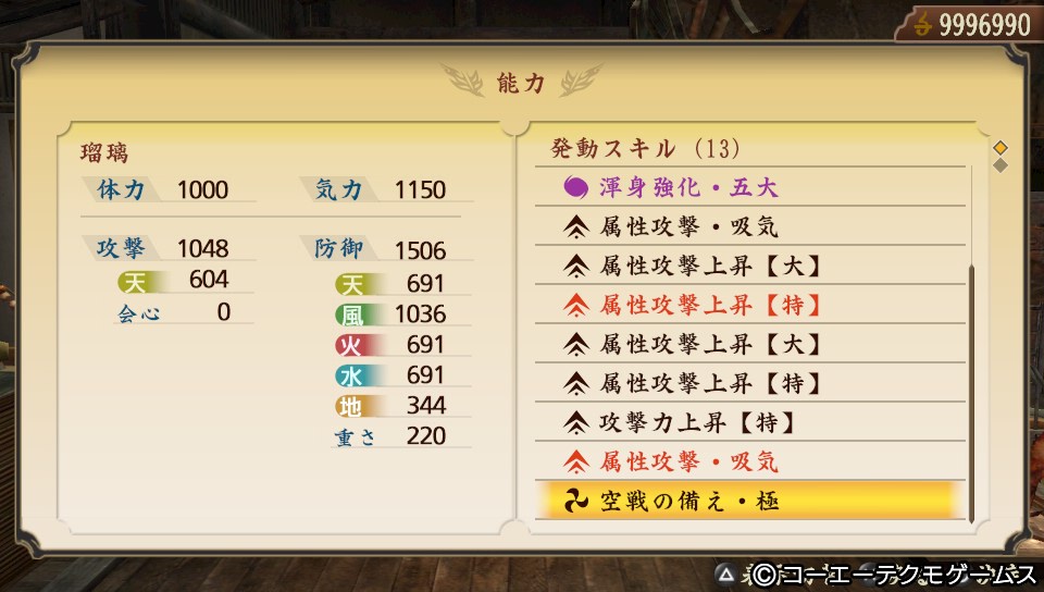 コンセプトは「属性攻撃強化、吸気で気力を補充」です。