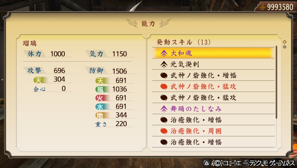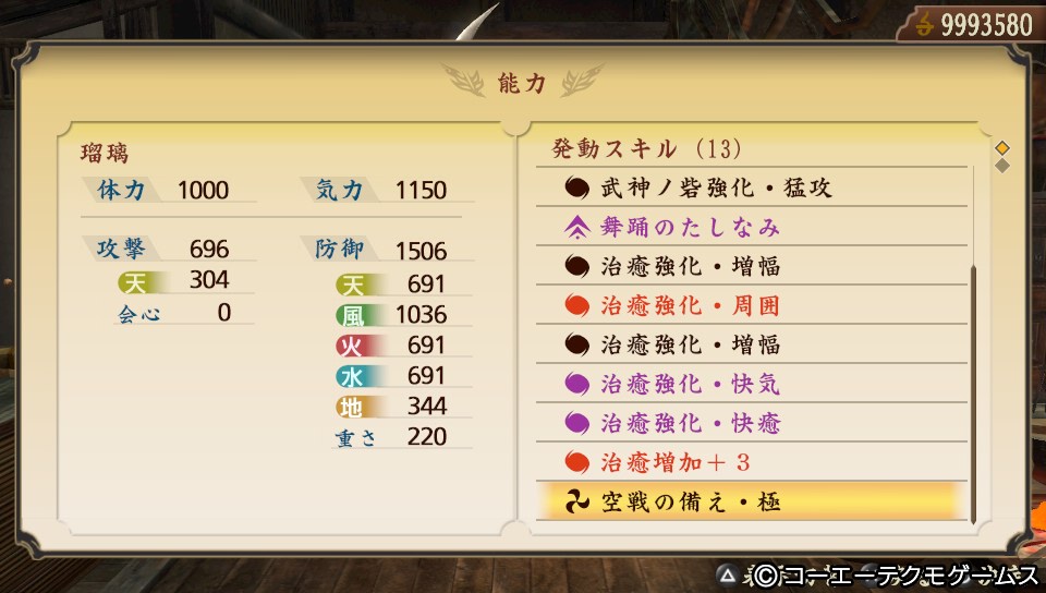 コンセプトは「治癒特化、武神ノ砦と合わせて味方の気力をサポート」です。