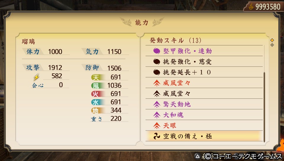 「驚天動地」「大和魂」「天眼」が発動しています。