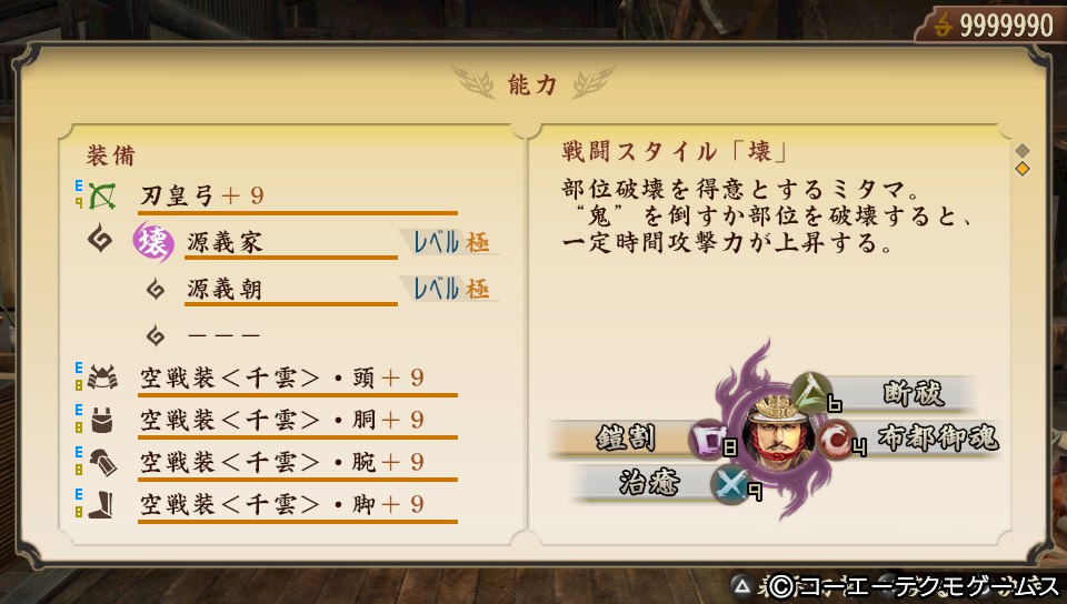 双刀「滅敵・衛身+9(魂溝=2)739・402・0」は「黒丸+9(魂溝=3)720・290・0」に「状態異常強化 大」×1「状態異常強化 特」×2をつけると近似します。
